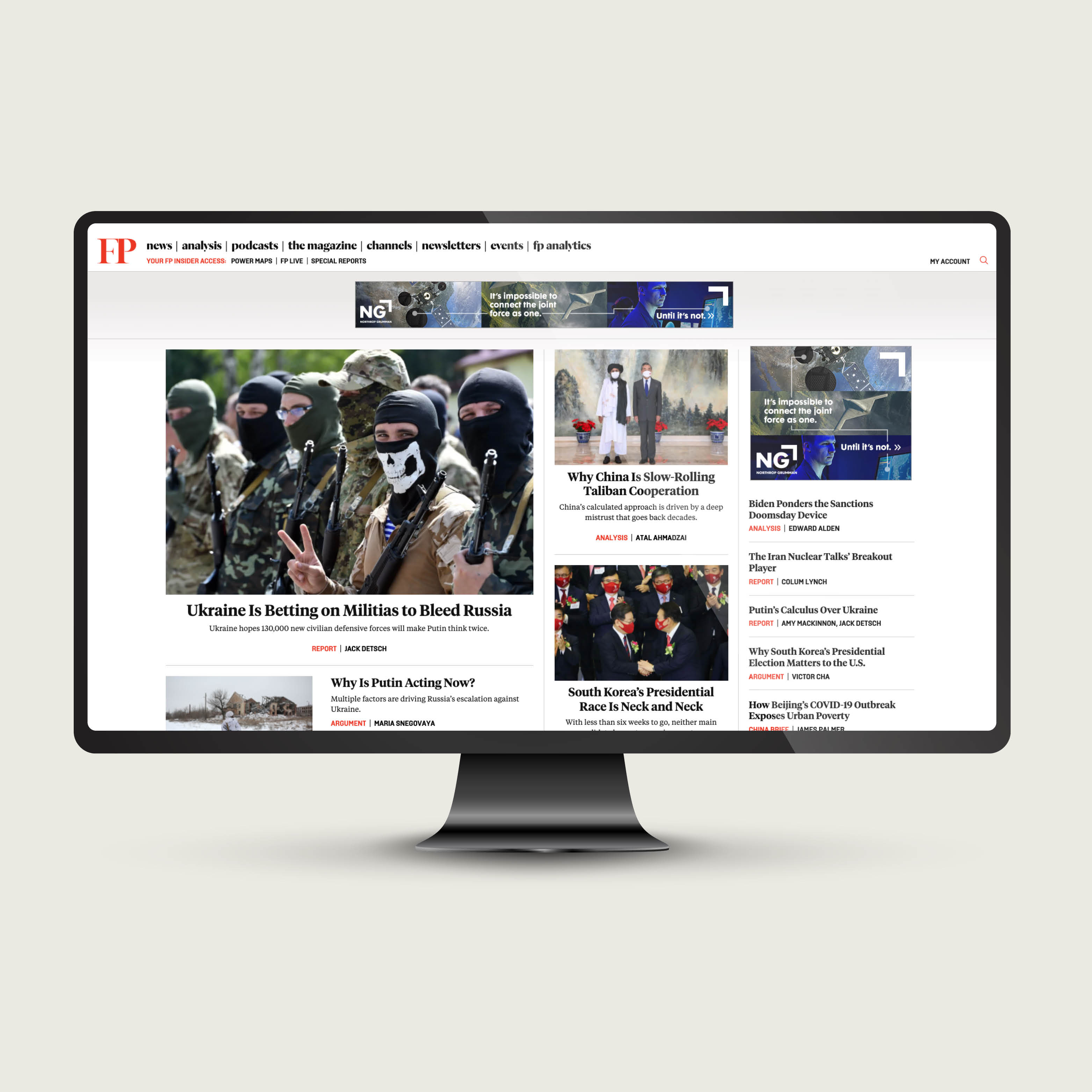 Northrop Grumman partnered with FP to deliver a year-long digital ad campaign to promote its cutting-edge, space-based technologies enabling more reliable communication among stakeholders across the U.S. military apparatus. That enabled the company to reach FP’s wide audience of readers in the Department of Defense, Army, Air Force, Navy, Marines, DIU, Space Force, CIA, SOUTHCOM, CENTCOM, and more.