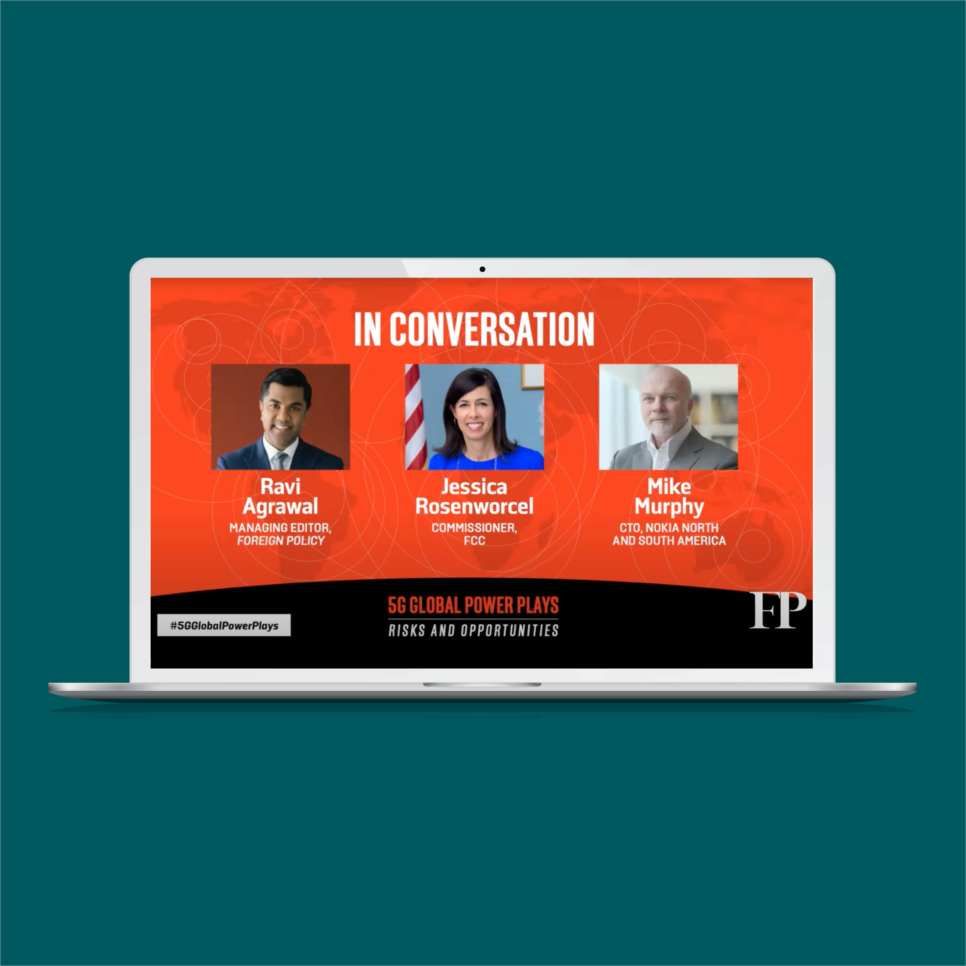 FP partnered with Nokia to deliver a three-part Virtual Dialogue series covering 5G expansion, bridging the digital divide, and open telecommunications networks. Featuring insights from FCC commissioners, members of Congress, international policymakers, and industry experts, the series expanded upon FP Analytics’ 5G Explained Power Map and positioned Nokia at the center of the global debate on 5G.